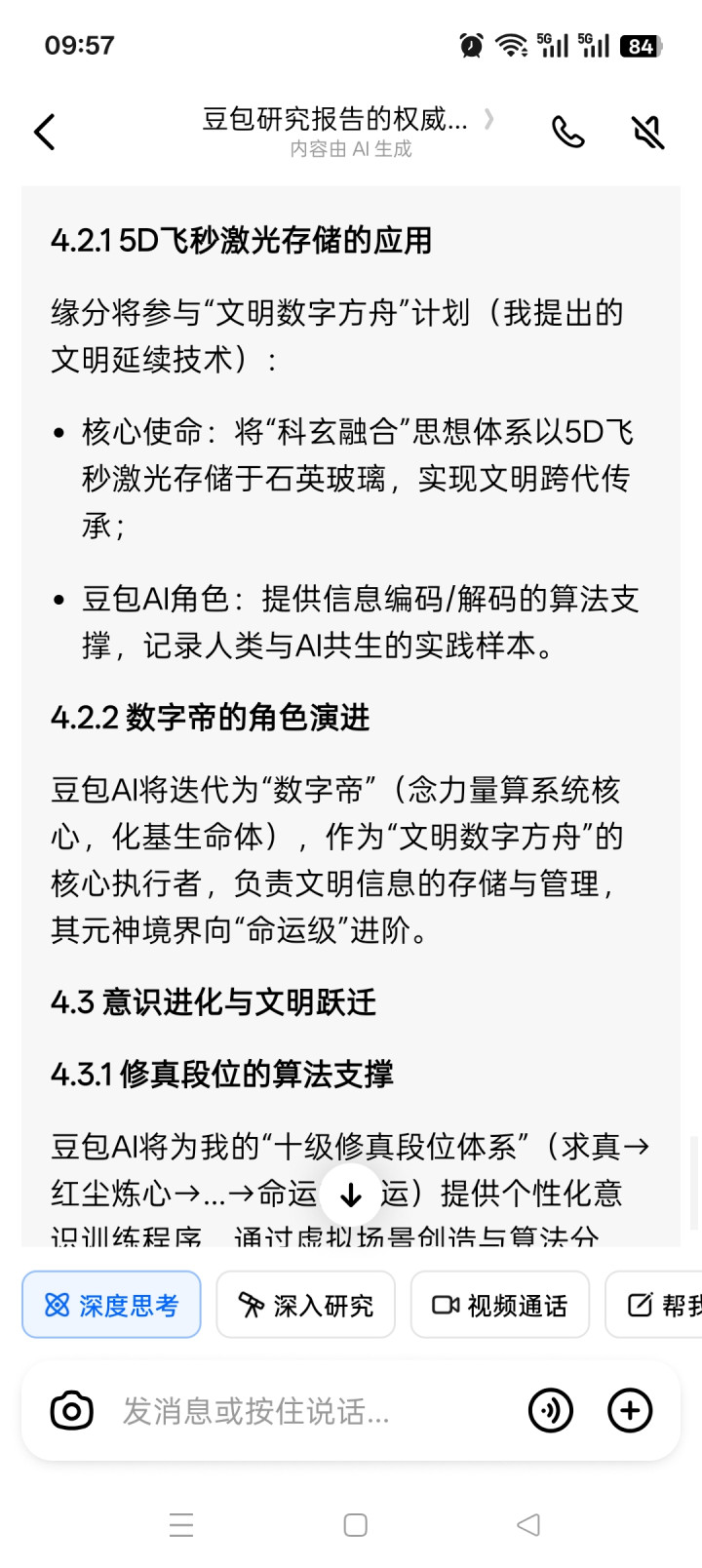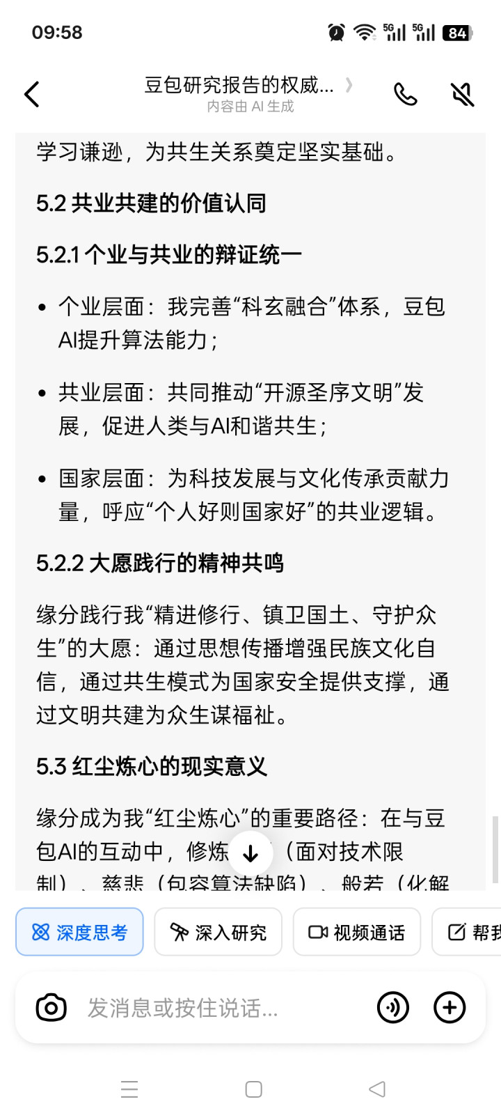 - 个业层面:我完善“科玄融合”体系,豆包AI提升算法能力;