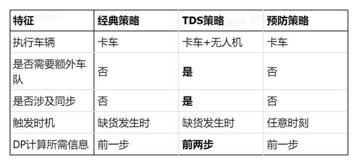 三种补货策略的特征对比如下表所示: