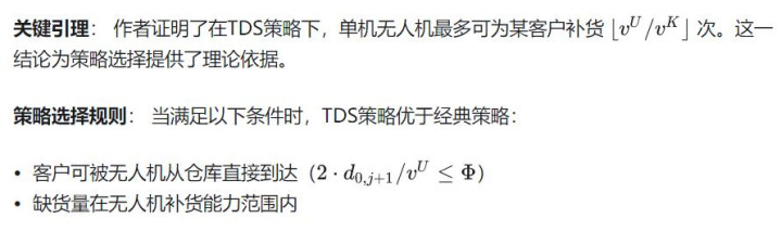 这一引理的证明基于三角不等式,说明当卡车速度不低于无人机时,使用无人机反而会增加成本。因此,只有当无人机速度显著快于卡车时,卡车-无人机协同配送才有意义。