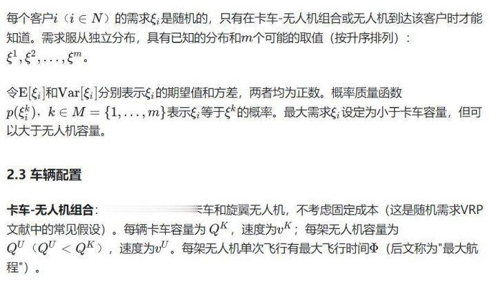运筹学界一直积极关注卡车与无人机协同配送所带来的同步路径规划挑战,以解决旋翼无人机续航和载重有限的问题。在假设卡车和无人机协同进行包裹配送的研究中,Li等(2020)和Zhou等(2023)研究的两级无人机车辆路径问题可以视为本研究的确定性版本。