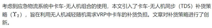 当搭载的无人机被派去服务指定客户时,卡车不能移动(这是一种基于卡车等待的相对简单的同步模式)