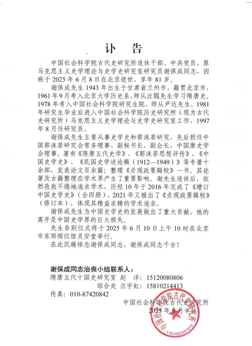 配资APP排名中国社会科学院研究员谢保成逝世,享年81岁