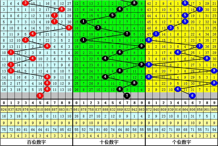 百个位合:前10期百个位两码合开出:5、3、3、5、2、1、0、6、5、0,其中百个位两码合012路比为5:1:4,奇偶比为6:4,本期看好百个位两码合开出奇数,注意两码合1、3、7。