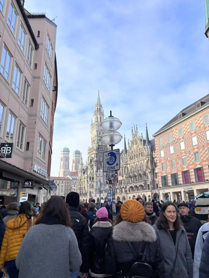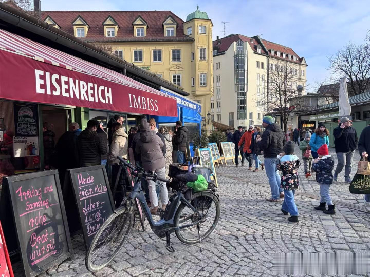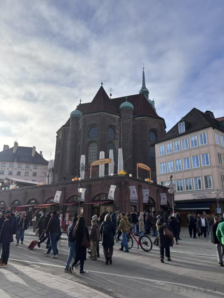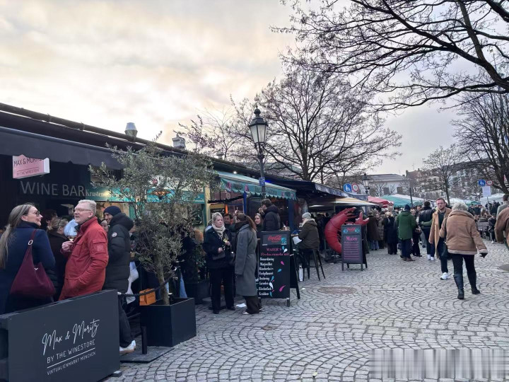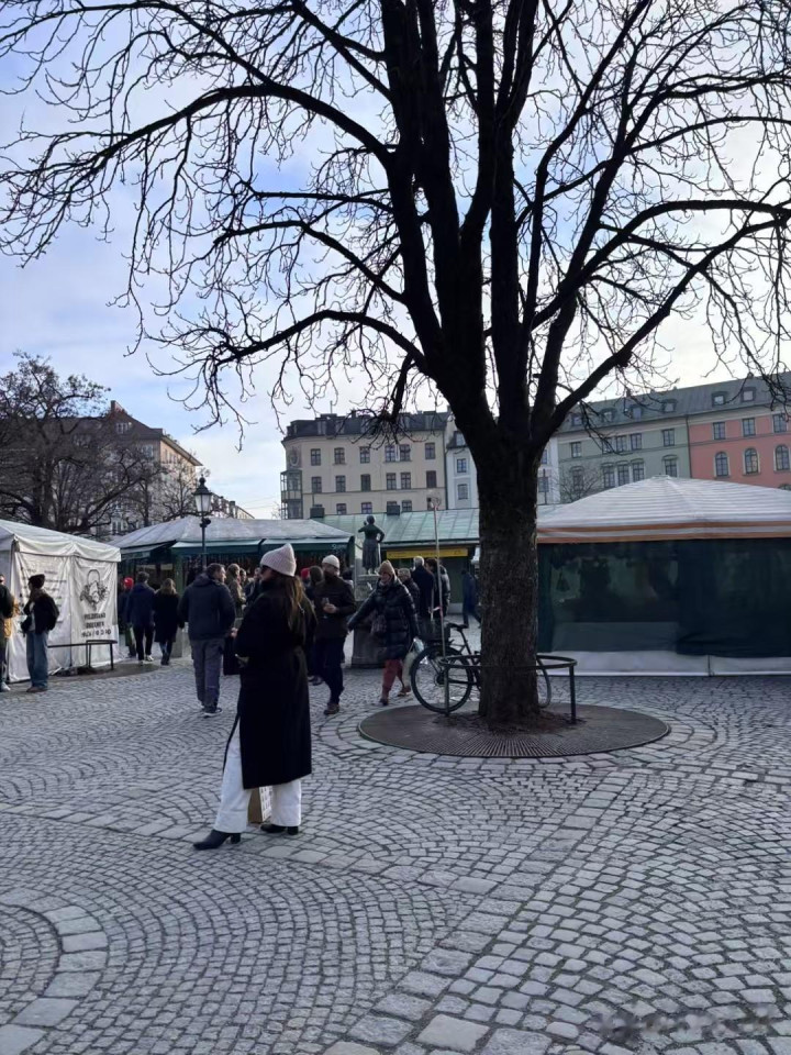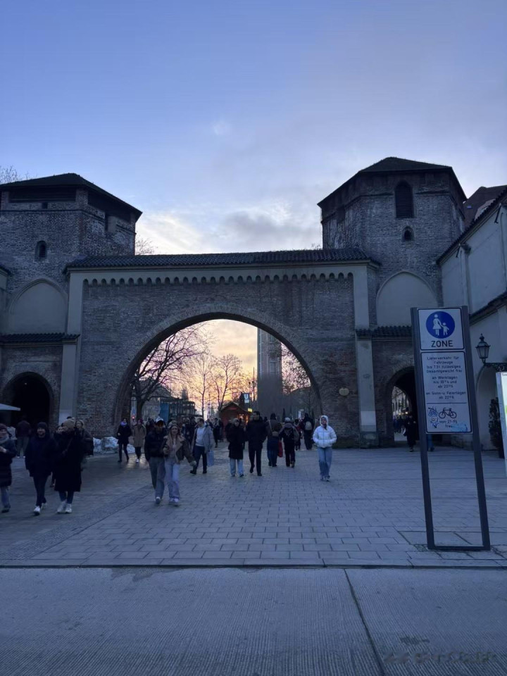 到傍晚就冷,路过上午到过的河边,河面结冰更重,每次看天气预报慕尼黑有零下20多度,别人手机是零下7度,对这个地方气候拿不准。人到这里了,显示1度,总的来说天气比我想的好。