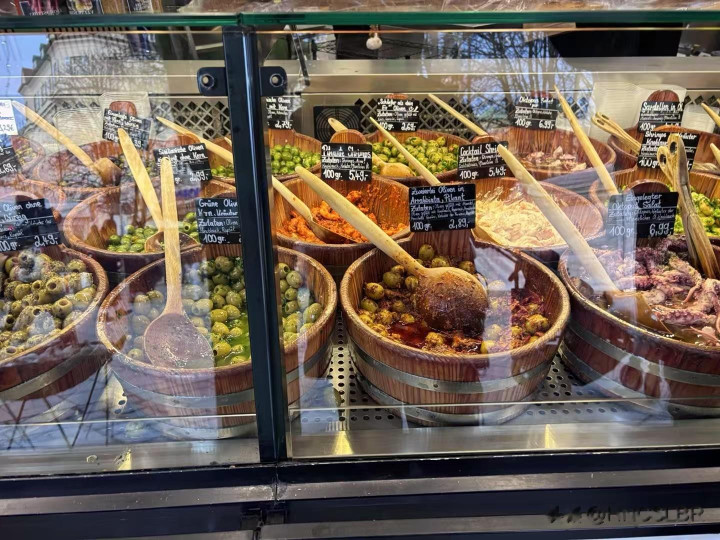 我吃这个觉得冰冰凉,汁水多,脆生生,不咸,爽口解乏,特别这几天没好好吃菜。吃了一根后又回头买了三根,当场又炫了一根,另外两个明日早点。市场看了半天,居然没卖面包的,卖橄榄,奶酪,酒,酱料的多。