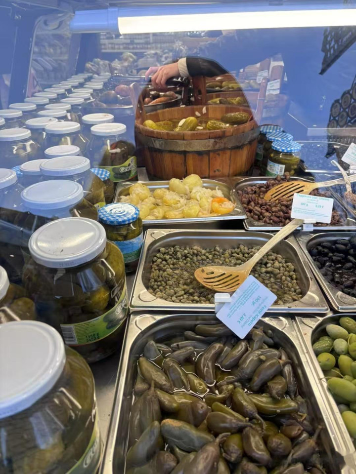 谷物市场的腌黄瓜真是一绝,大人小孩人手一根,买黄瓜的人没停过,需要两个人配合,一个人卖,一个人收钱。看着小朋友抱着黄瓜啃,这种绝对会成为影响她口味的童年印记。