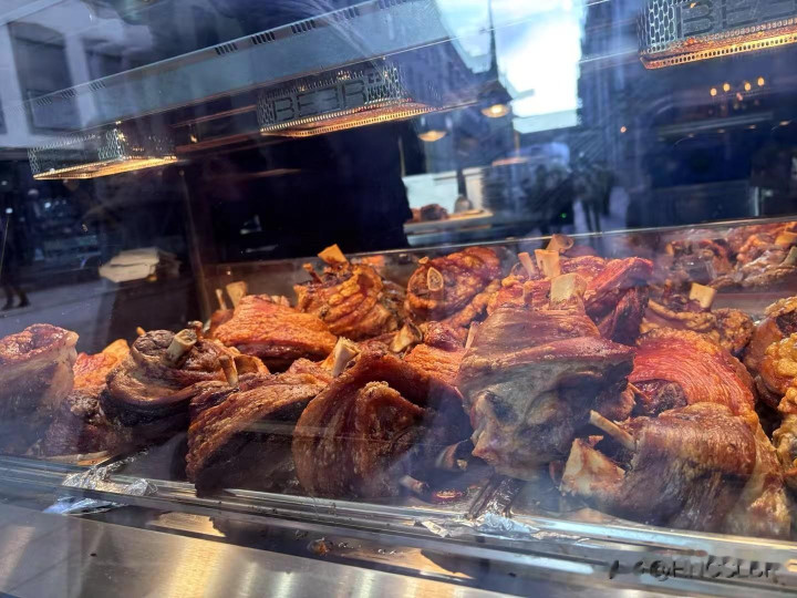 王宫出来已经不行了,找吃的,3点多好多店都歇业。吃了著名猪脚啤酒屋的外卖猪脚肉夹馍。