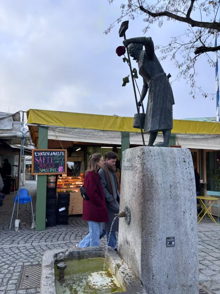 谷物市场,周六集市热闹。各种露天喝酒,赶大集。一小撮一小撮的小伙伴拿着一瓶酒,手里还都有正经酒杯,站在小喷泉边,喝喝酒接点水又喝一喝,我看到三个小喷泉。好像全城的人都出来了,小孩大人都高兴,喝酒的地方人最多。